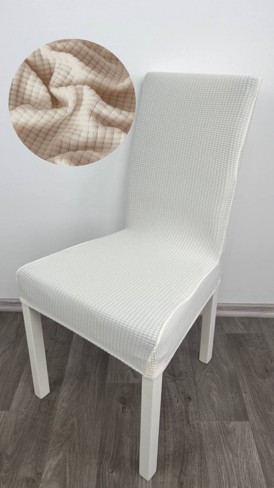Чохол на крісло клітинка велика молочна