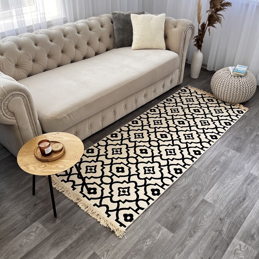 Цей килимок може відтворити затишок у вашому будинку, створюючи атмосферу тепла та комфорту. Його унікальна особливість - можливість використання з обох сторін, що додає йому більше функціональності.