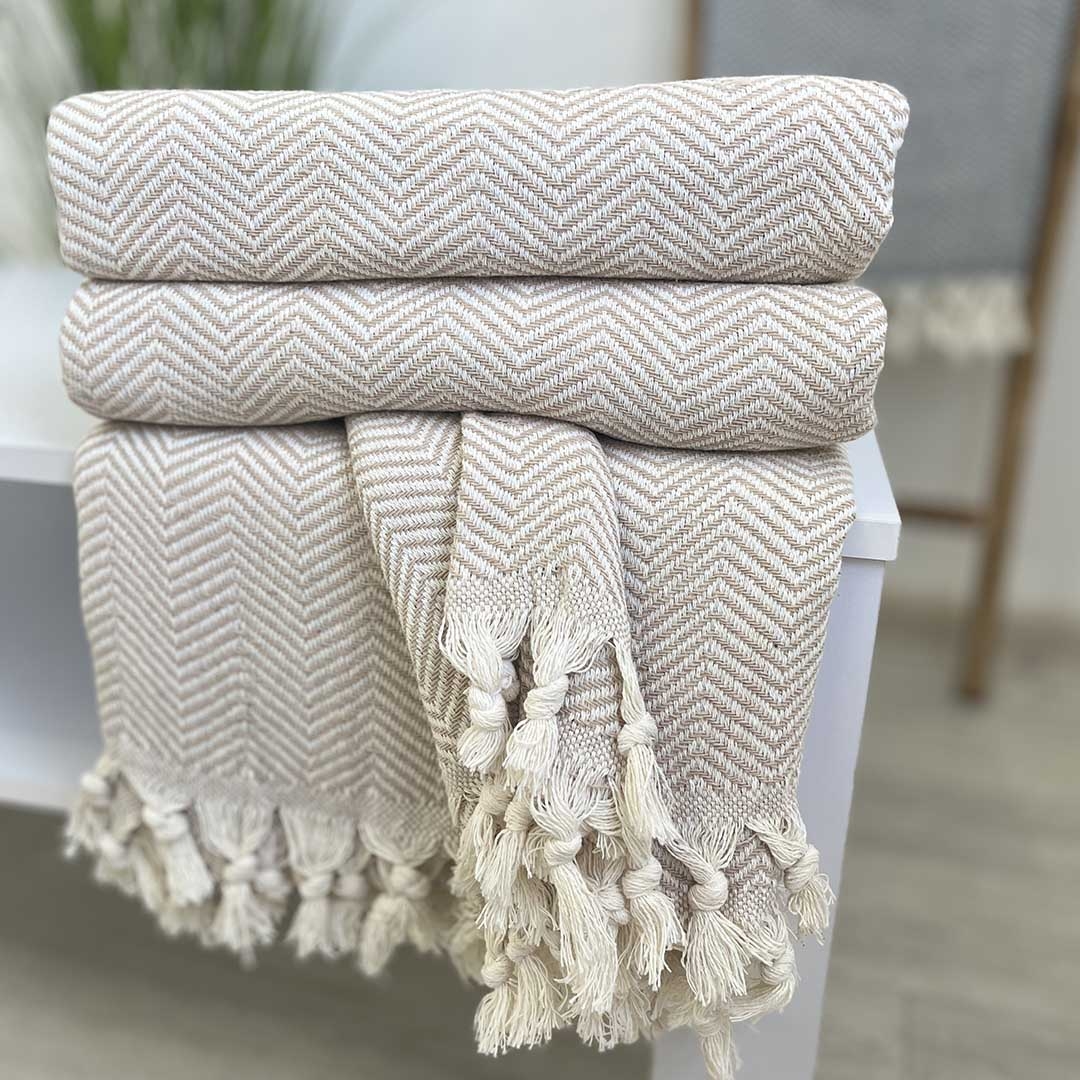 Плед покривало 200х230 зигзаг беж