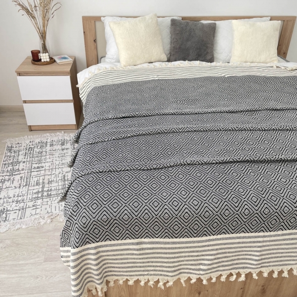Плед покривало 180х230 ромб чорний