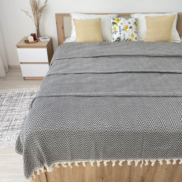 Плед покривало 180х230 зигзаг графіт
