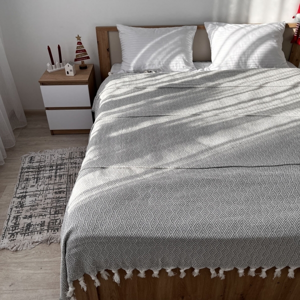 Плед покривало 220х230 ялинка сіре