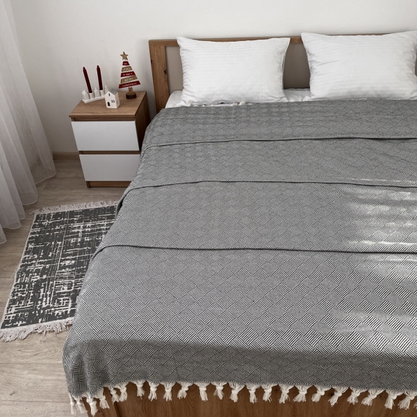 Легкий і ніжний бавовняний плед з оригінальним геометричним візерунком, стане відмінним вибором для прикраси вашого житла та забезпечення комфорту під час прохолодних вечорів. Ця якісна річ може служити покривалом для ліжка або дивану, а також вишуканою деталлю інтер'єру та стане чудовим подарунком для вас або ваших близьких.