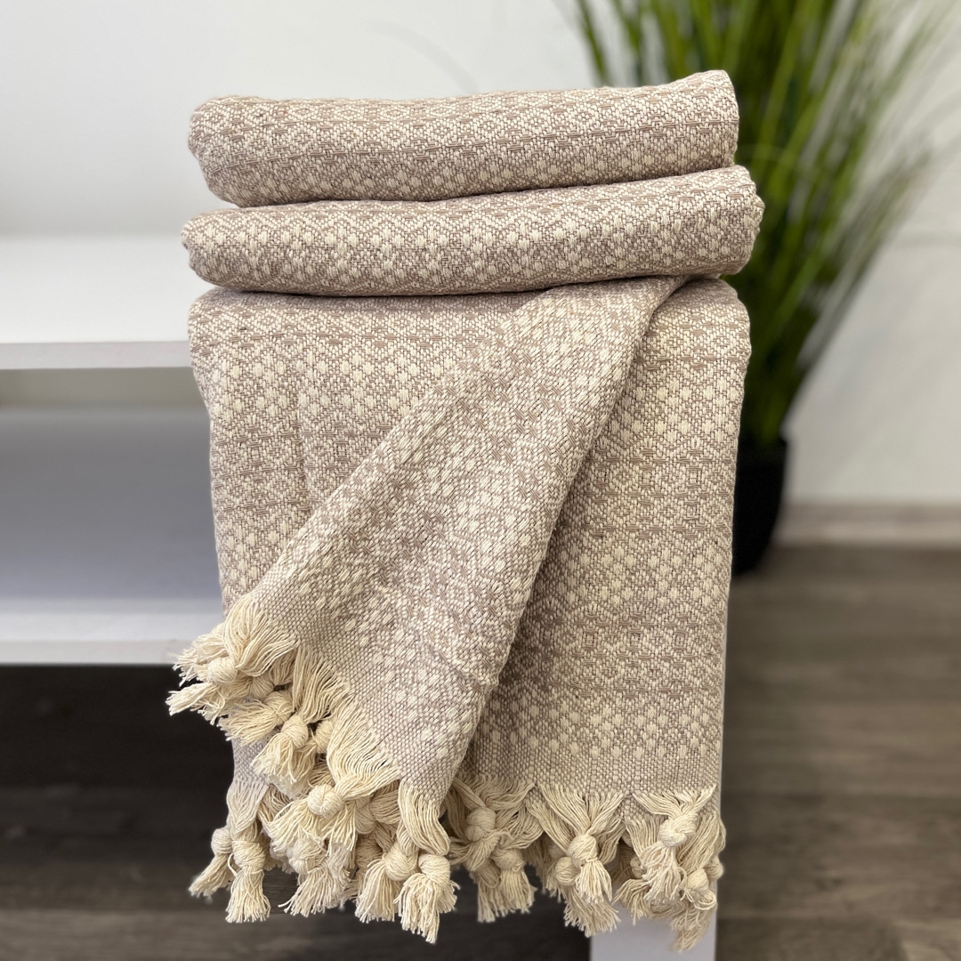 Плед покривало 180х230 ромб полосатий беж
